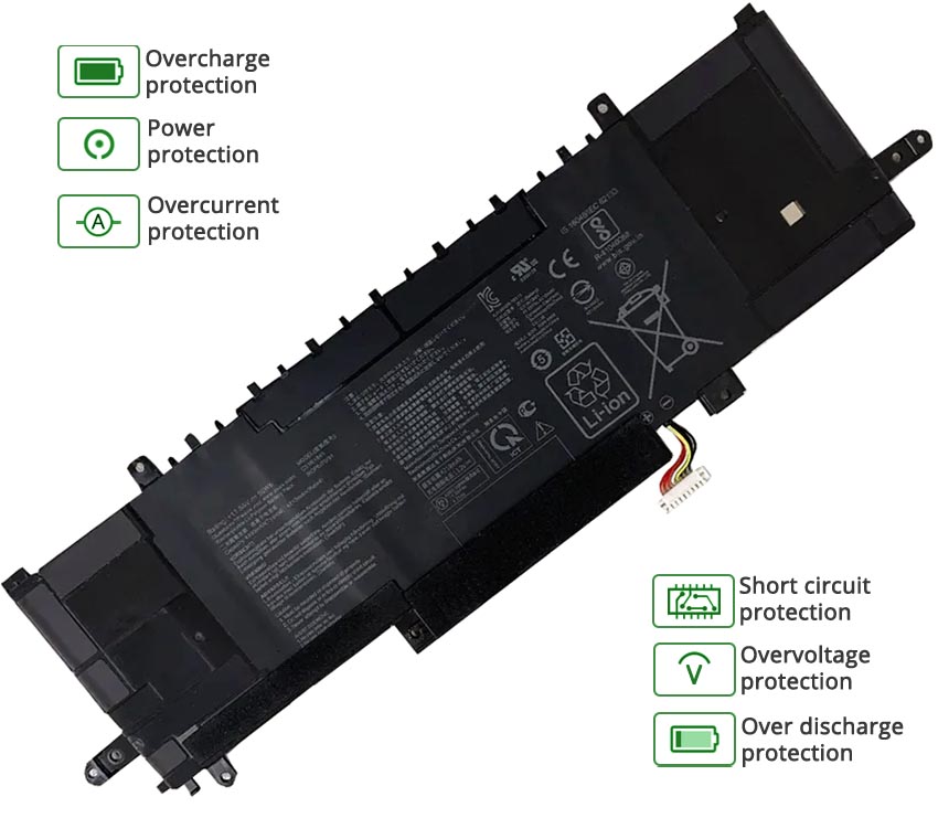 - Notre batterie ASUS UX434FAC contient des cellules de batterie de qualité A pour assurer une durée de vie de la batterie plus longue et plus de cycles de charge.