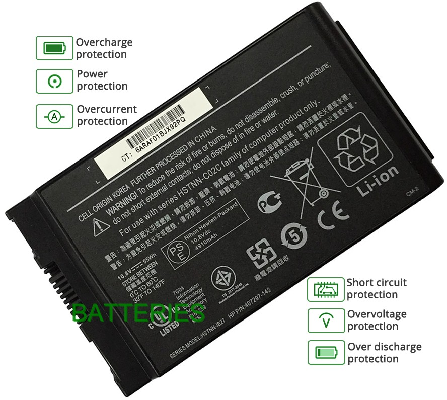 Nos batterie pour 407297-143 HP notebook pc, comme celles d'ordinateurs de marque, sont montées avec les cellules de la qualité A+ et les puces intelligentes de qualité supérieure. Mais nous personnalisons notre propre boîtier de batterie et réduisons le coût supplémentaire requis par la marque, c'est pourquoi les clients peuvent acheter des batteries de remplacement de qualité d'origine au prix compétitif.