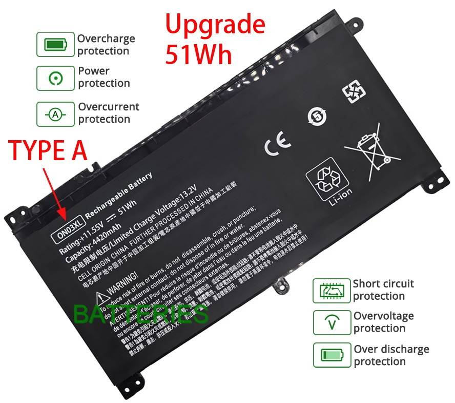 - Notre batterie HP Pavilion x360 13-u100 contient des cellules de batterie de qualité A pour assurer une durée de vie de la batterie plus longue et plus de cycles de charge.