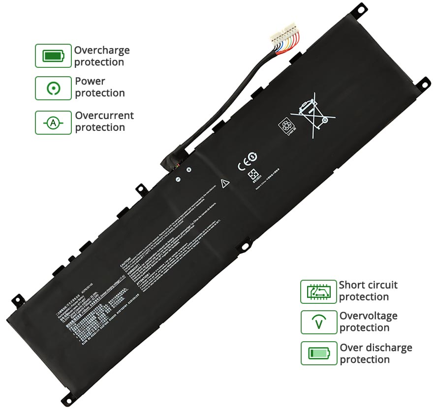 - Notre batterie MSI Vector GP66HX 12UH contient des cellules de batterie de qualité A pour assurer une durée de vie de la batterie plus longue et plus de cycles de charge.
