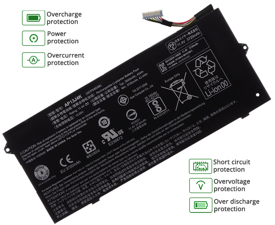 Nos batterie pour CHROMEBOOK CP5-471-C68P Acer notebook pc, comme celles d'ordinateurs de marque, sont montées avec les cellules de la qualité A+ et les puces intelligentes de qualité supérieure. Mais nous personnalisons notre propre boîtier de batterie et réduisons le coût supplémentaire requis par la marque, c'est pourquoi les clients peuvent acheter des batteries de remplacement de qualité d'origine au prix compétitif.