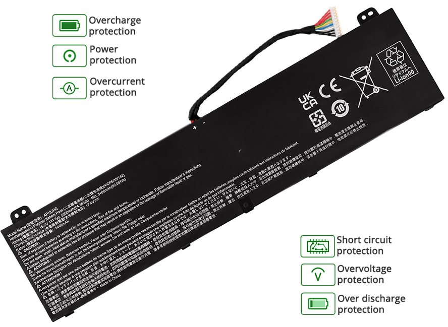 - Notre batterie Acer PREDATOR PT515-51-XXXX contient des cellules de batterie de qualité A pour assurer une durée de vie de la batterie plus longue et plus de cycles de charge.