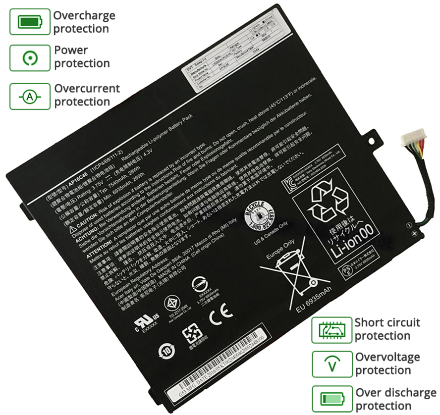 - Notre batterie Acer SWITCH SW5-017-142G contient des cellules de batterie de qualité A pour assurer une durée de vie de la batterie plus longue et plus de cycles de charge.