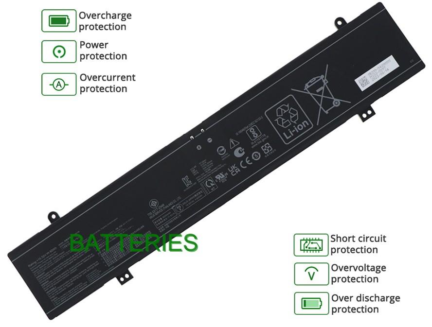 - Notre batterie ASUS ROG Strix G16 G614JU contient des cellules de batterie de qualité A pour assurer une durée de vie de la batterie plus longue et plus de cycles de charge.
