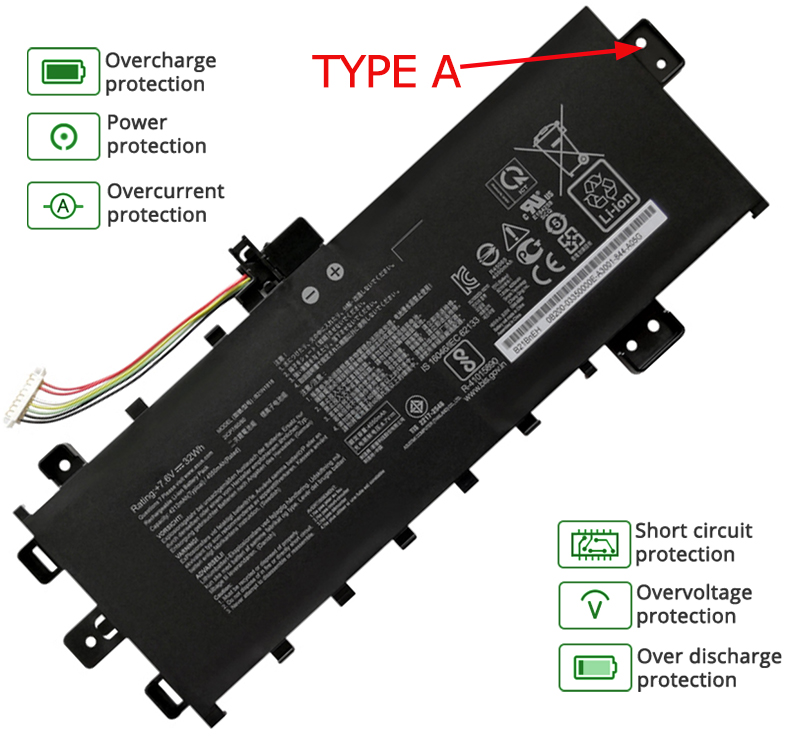 - Notre batterie ASUS VIVOBOOK M712DA contient des cellules de batterie de qualité A pour assurer une durée de vie de la batterie plus longue et plus de cycles de charge.