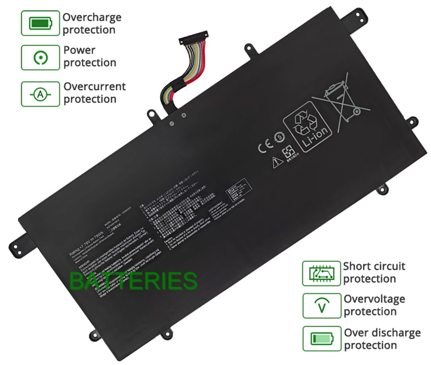 - Notre batterie ASUS Zenbook UX5606SA-RK contient des cellules de batterie de qualité A pour assurer une durée de vie de la batterie plus longue et plus de cycles de charge.