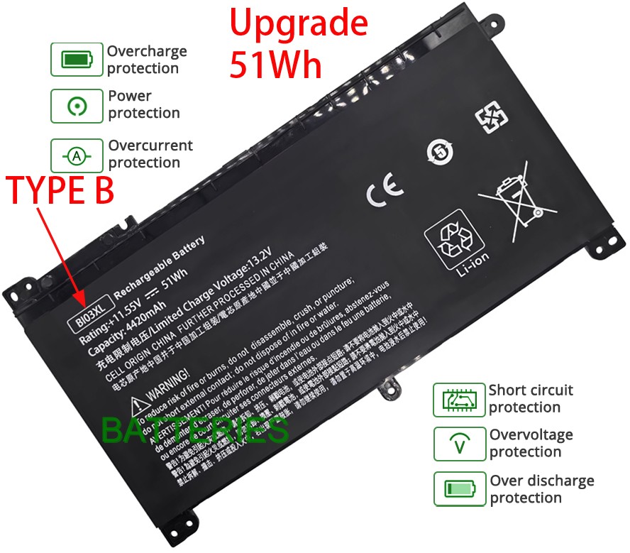 - Notre batterie HP Pavilion x360 13-u100 contient des cellules de batterie de qualité A pour assurer une durée de vie de la batterie plus longue et plus de cycles de charge.