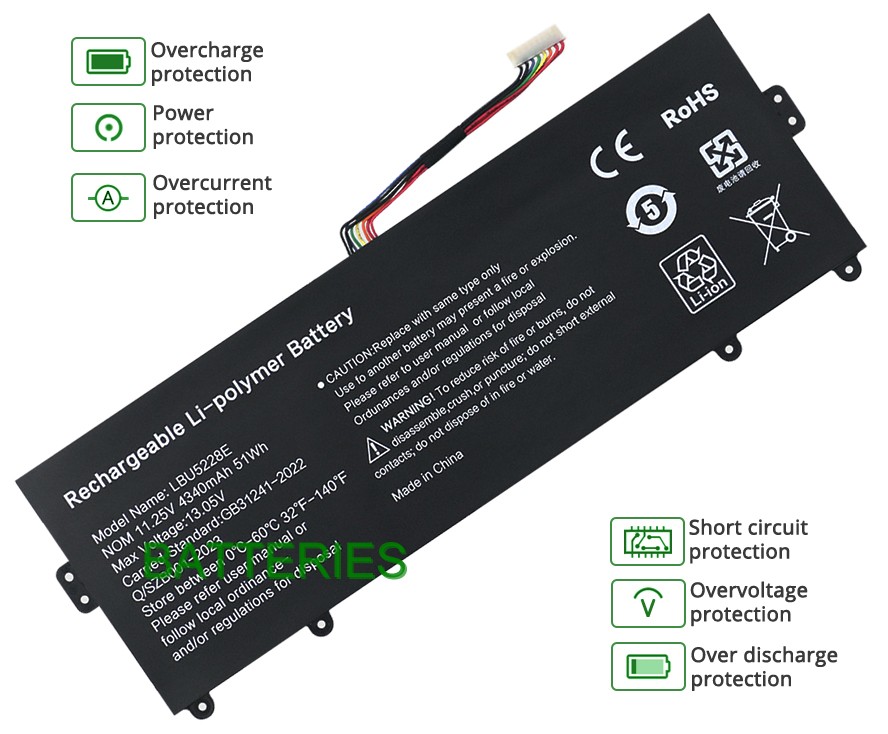 Caractéristiques de notre batterie de remplacement LG LBU5228E :