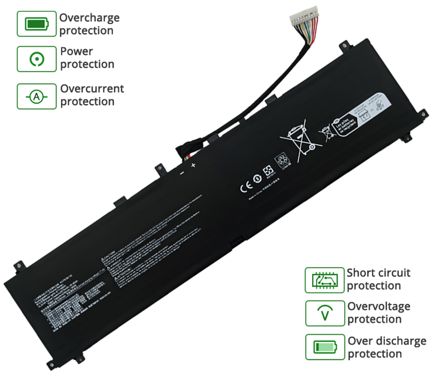 - Notre batterie MSI Raider GE78 HX 14V contient des cellules de batterie de qualité A pour assurer une durée de vie de la batterie plus longue et plus de cycles de charge.